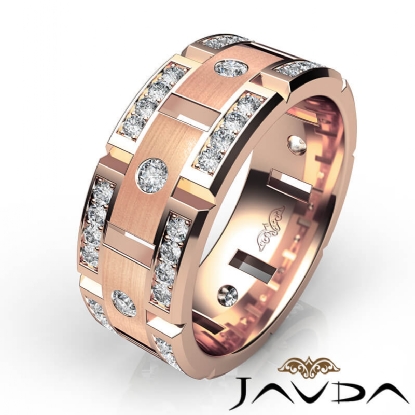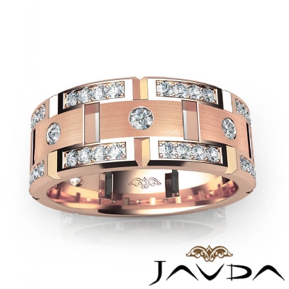 Round Diamond Wedding Eternity Band Men's Matt Finish Ring 18k Rose Gold (1Ct. tw.)