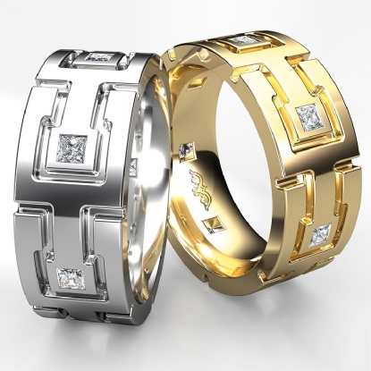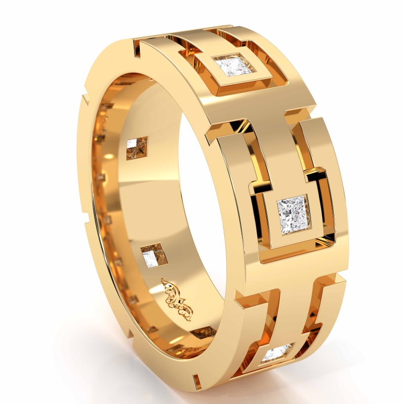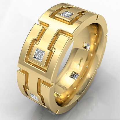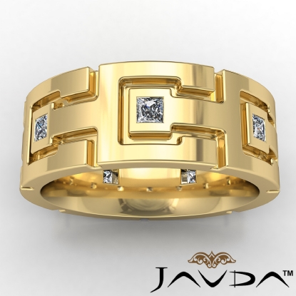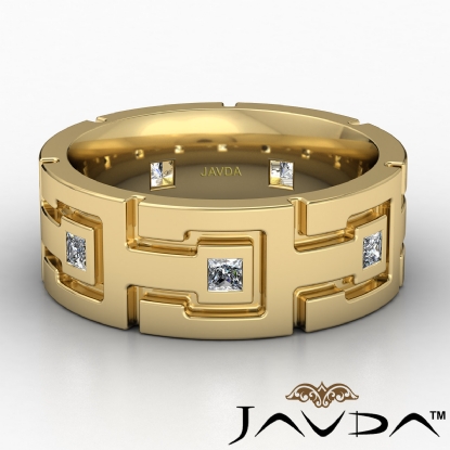 This unique style princess diamond eternity men's wedding band handcrafted in gold and platinum. Features 0.50 carat princess diamonds in a bezel setting on link design. Available in 14k & 18k white gold, yellow gold, rose gold and platinum 950. (0.5Ct. tw.)