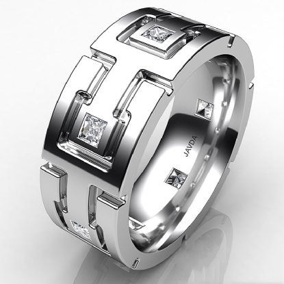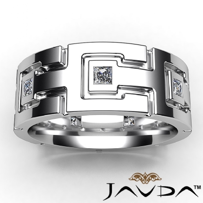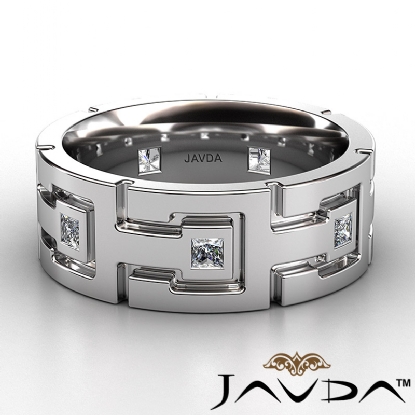 This unique style princess diamond eternity men's wedding band handcrafted in gold and platinum. Features 0.50 carat princess diamonds in a bezel setting on link design. Available in 14k & 18k white gold, yellow gold, rose gold and platinum 950. (0.5Ct. tw.)