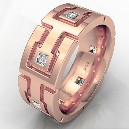 This unique style princess diamond eternity men's wedding band handcrafted in gold and platinum. Features 0.50 carat princess diamonds in a bezel setting on link design. Available in 14k & 18k white gold, yellow gold, rose gold and platinum 950. (0.5Ct. tw.)
