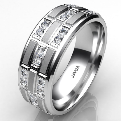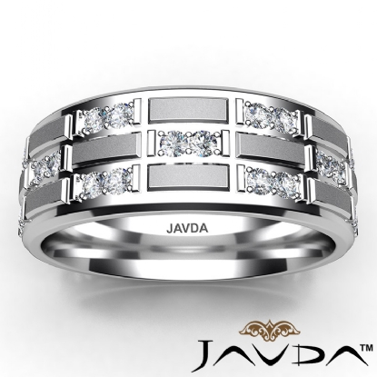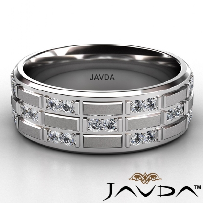 3 Row Matte Finish Diamond Eternity Men's Wedding Band 18k W Gold 0.80 Ct. (0.8Ct. tw.)
