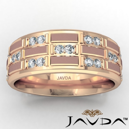 3 Row Matte Finish Diamond Eternity Men's Wedding Band 14k Rose Gold 0.80 Ct. (0.8Ct. tw.)