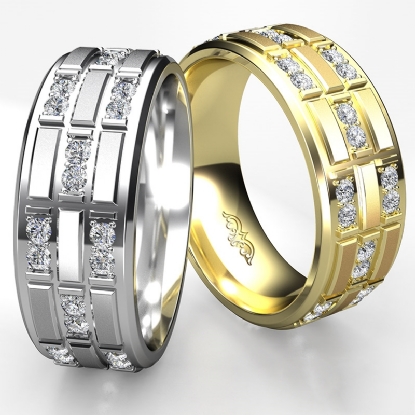 Designer classic style 3 row diamond eternity men's wedding band made in precious metal 14k Rose Gold. Features 0.80 carat round diamonds in a micro pave setting with a touch of matte finish detailing. Available in 14k & 18k white gold, yellow gold, rose gold and platinum 950. (0.8Ct. tw.)