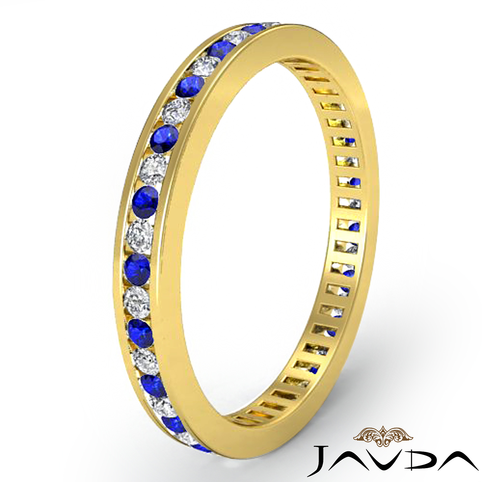 Blue Sapphire Channel Set Diamond Women Eternity Band Ring 18k Gold (0.29Ct. tw.)