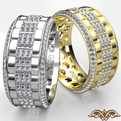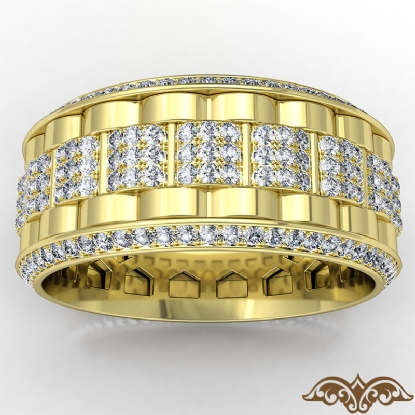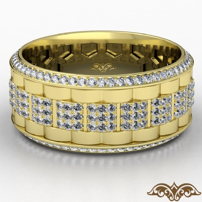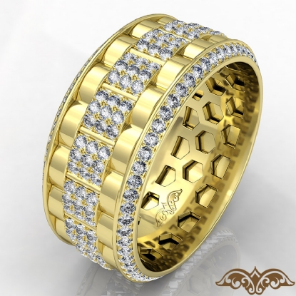Designer magnificent chain link style diamond eternity men's wedding band handcrafted in 18k Gold Yellow. Features 1.50 carat round diamonds in a micro pave setting with polished finish chain link design. Available in 14k & 18k white gold, yellow gold, rose gold and platinum 950. (1.5Ct. tw.)