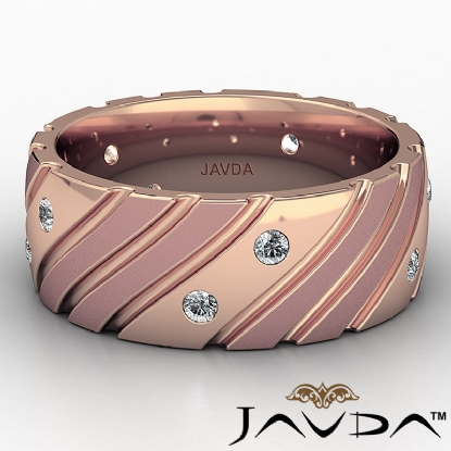 Diagonal Grooved Bezel Diamond Eternity Men's Wedding Band 14k Rose Gold 0.30 Ct. (0.3Ct. tw.)