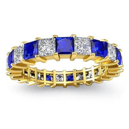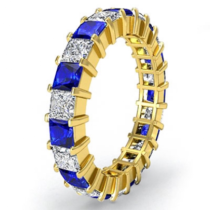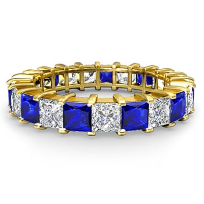 Princess Cut Sapphire Diamond Eternity Wedding Band Women's Ring made in 14k Gold Yellow. (2.17Ct. tw.)