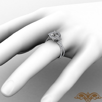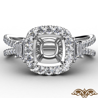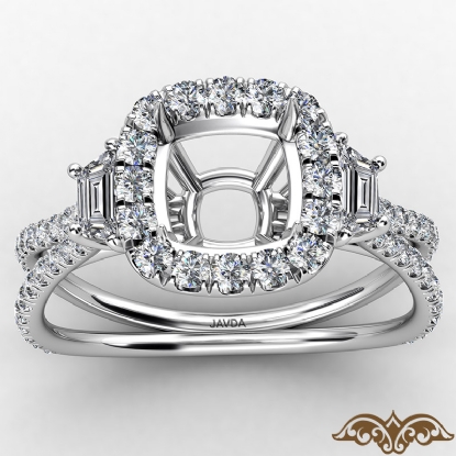 3 Stone Baguette Cushion Semi Mount Halo Diamond Engagement Ring Platinum (1.1Ct. tw.)