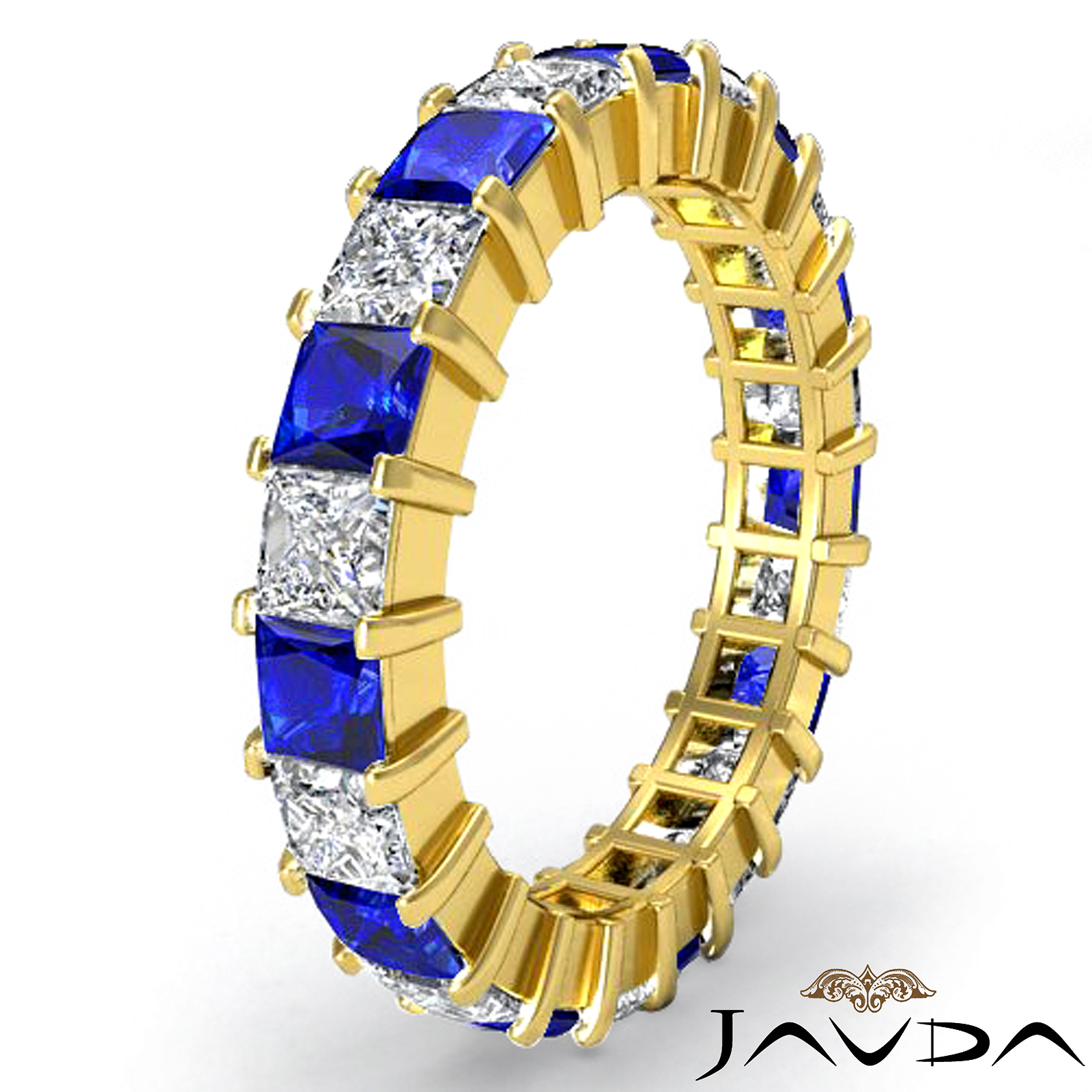 Princess Cut Sapphire Diamond Eternity Wedding Band Women's Ring made in 18k Gold Yellow. (2.17Ct. tw.)