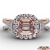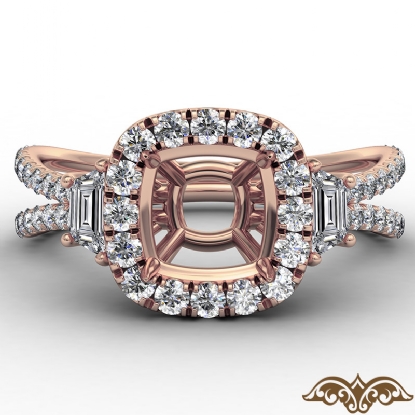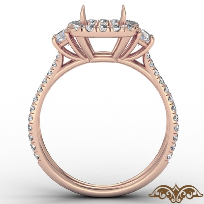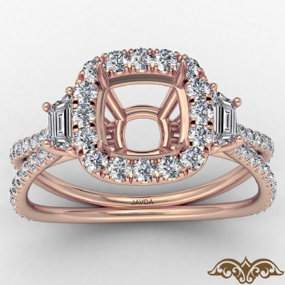 3 Stone Baguette Cushion Semi Mount Halo Diamond Engagement Ring 14k Rose Gold (1.1Ct. tw.)