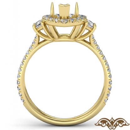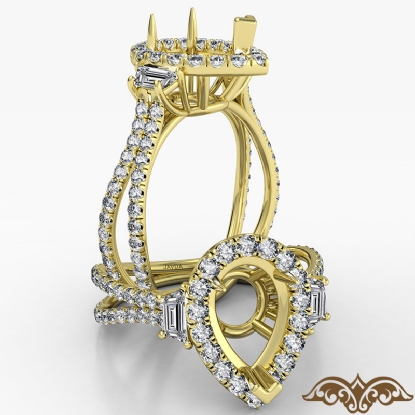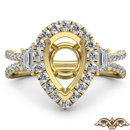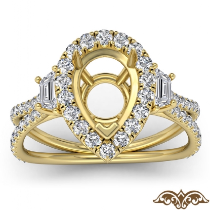 Pear Semi Mount French Pave 3 Stone Halo Diamond Engagement Ring 18k Gold (1.1Ct. tw.)