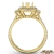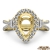 This glorious three stone halo diamond engagement ring made from 18k Gold Yellow. Vintage-inspired combination of halo and 3 stone ring features diamonds on split shank and halo, set with french U split pave setting and pear cut semi mount accented with