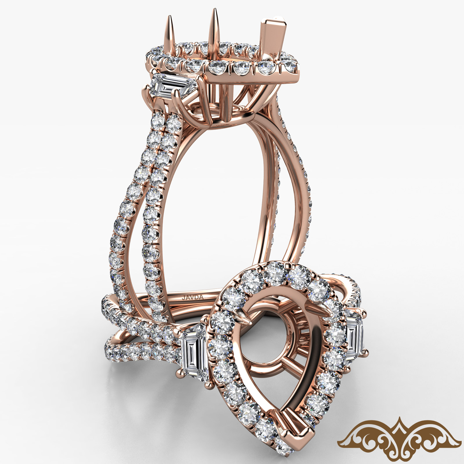 Pear Semi Mount French Pave 3 Stone Halo Diamond Engagement Ring 14k Rose Gold (1.1Ct. tw.)
