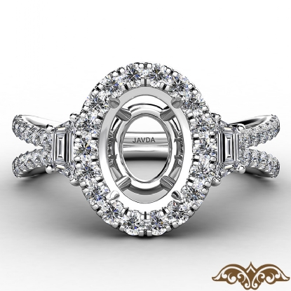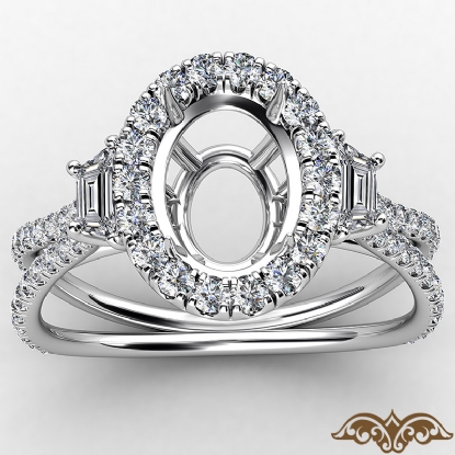 Three Stone Oval Semi Mount Halo Diamond Engagement Ring Platinum (1.1Ct. tw.)