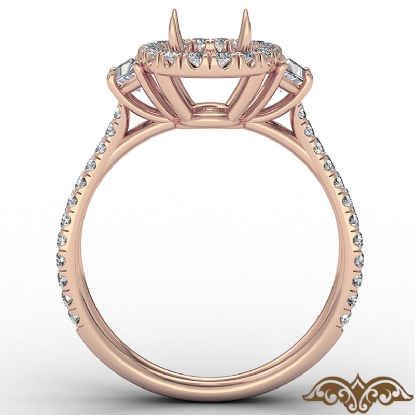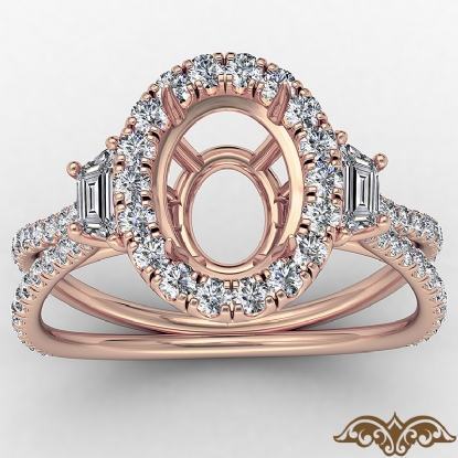 Three Stone Oval Semi Mount Halo Diamond Engagement Ring 18k Rose Gold (1.1Ct. tw.)