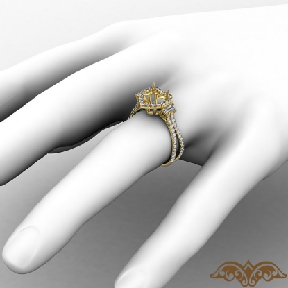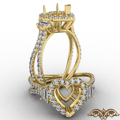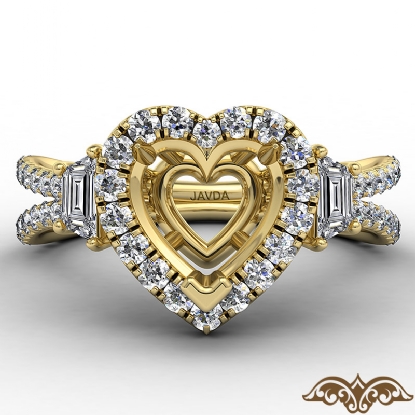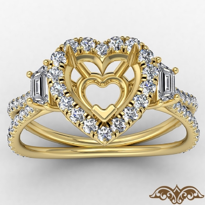 3 Three Stone Heart Semi Mount Halo Diamond Engagement Ring 18k Gold (1.05Ct. tw.)