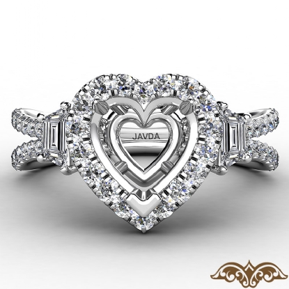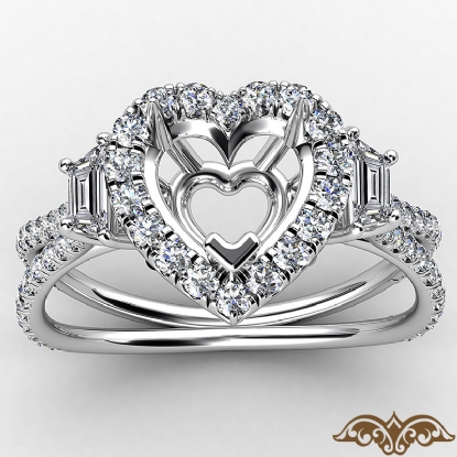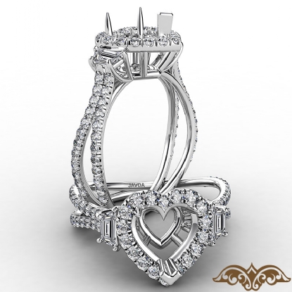 3 Three Stone Heart Semi Mount Halo Diamond Engagement Ring Platinum (1.05Ct. tw.)