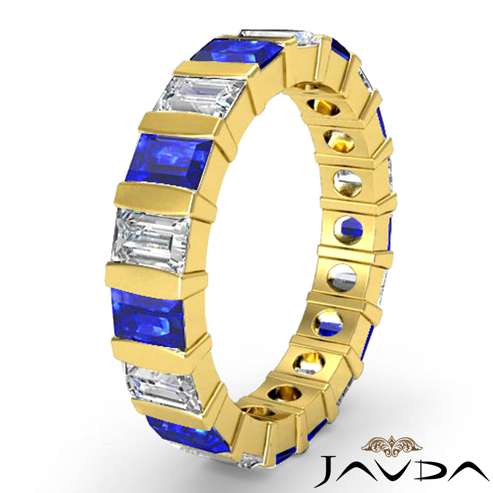 Baguette Sapphire Diamond Wedding Womens Ring Eternity Band 18k Gold 3CT (1.5Ct. tw.)