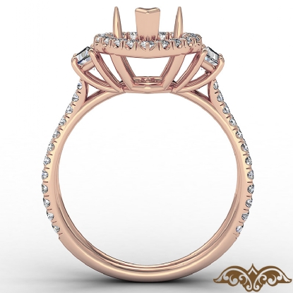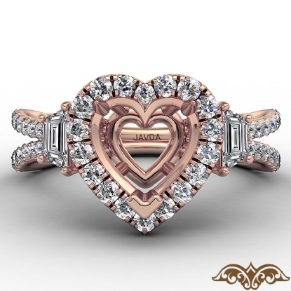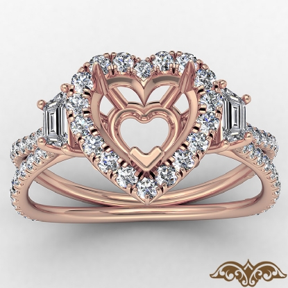 3 Three Stone Heart Semi Mount Halo Diamond Engagement Ring 14k Rose Gold (1.05Ct. tw.)