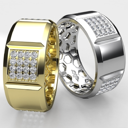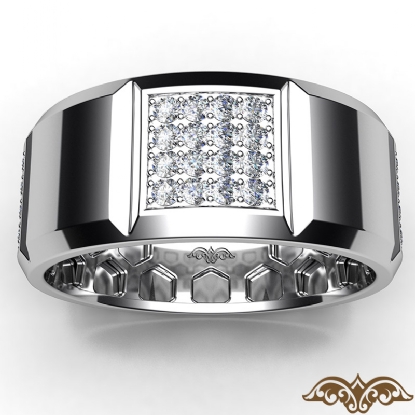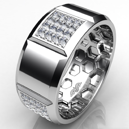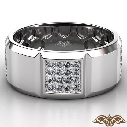 This handsome men's diamond eternity wedding band is sure to win his heart. Features 1.00 carat round diamonds in a micro pave setting and vertical cuts with beveled edges crafted in polished finished Platinum 950. Available in 14k & 18k white gold, yellow gold, rose gold and platinum 950. (1Ct. tw.)