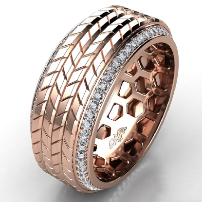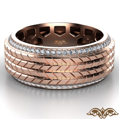 Grooved Tyre Tread Men's Diamond Eternity Wedding Band 14k Rose Gold 0.60 Ct. (0.6Ct. tw.)