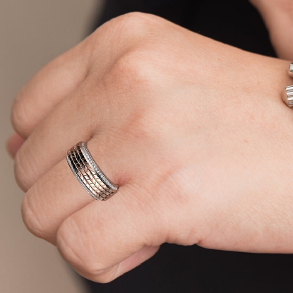 Remarkable grooved tyre tread men's diamond eternity wedding band made in 14k Rose Gold. Features 0.60 carat round diamonds with center grooved in a tyre tread style, side diamonds in a micro pave setting on edges adding a modern flair. This handsome wedding band available in 14k & 18k white gold, yellow gold, rose gold and platinum 950. (0.6Ct. tw.)