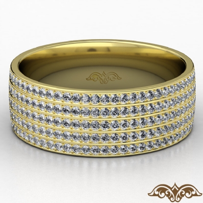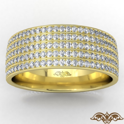 Luxurious and shimering 5 row diamond men's eternity wedding band elegantly crafted in 18k Gold Yellow. Features 1.50 carat round diamonds in a micro pave setting. This dazzling wedding band available in 14k & 18k white gold, yellow gold, rose gold and platinum 950. (1.5Ct. tw.)