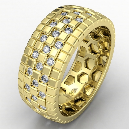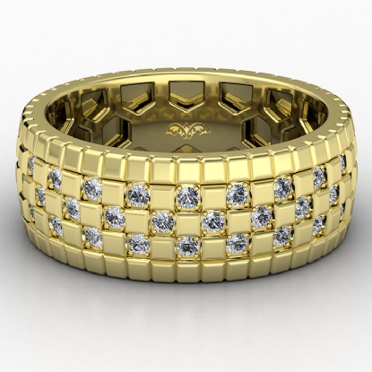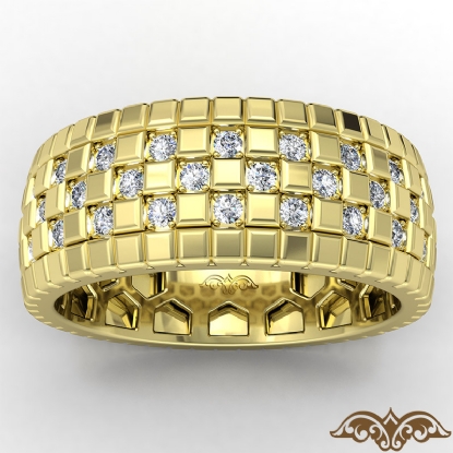 Elegant checkered diamond men's eternity wedding band crafted in 14k Gold Yellow. This sophisticated wedding band features 0.85 carat round diamonds in a micro pave setting on checkerboard pattern. Available in 14k & 18k white gold, yellow gold, rose gold and platinum 950. (0.85Ct. tw.)