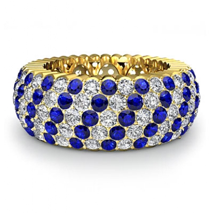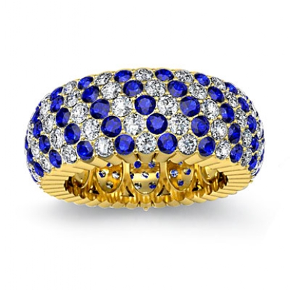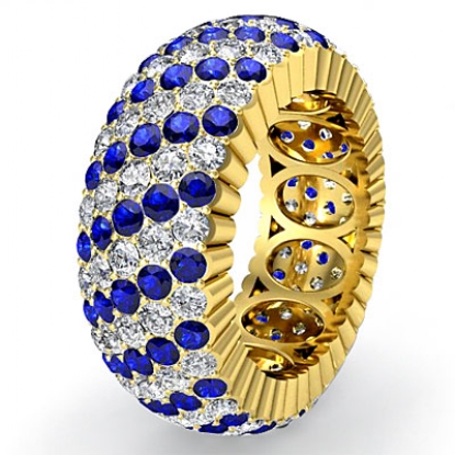 Round Pave Sapphire Diamond Women's Eternity Anniversary Ring Band made in 14k Gold Yellow. (1.72Ct. tw.)