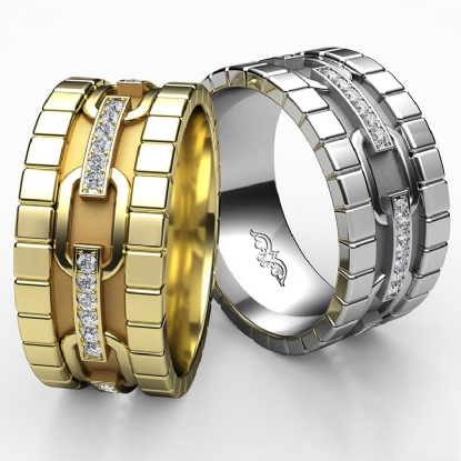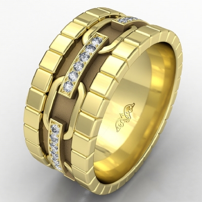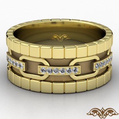 This unique link design men's eternity wedding band made in polished finish 14k Gold Yellow. Features 0.25 carat round diamonds in a micro pave set on beautiful chain link pattern with brick style edges. Available in 14k & 18k white gold, yellow gold, rose gold and platinum 950. (0.25Ct. tw.)