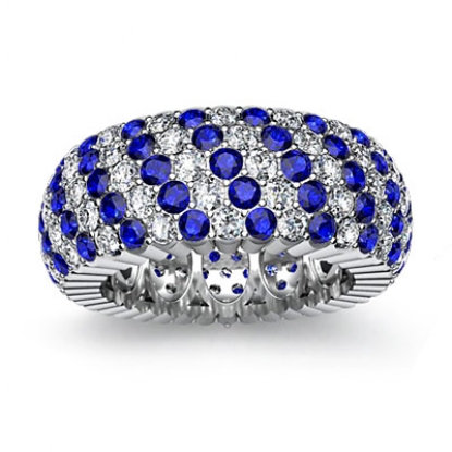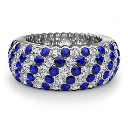 Round Pave Sapphire Diamond Women's Eternity Anniversary Ring Band made in 18k Gold White. (1.72Ct. tw.)