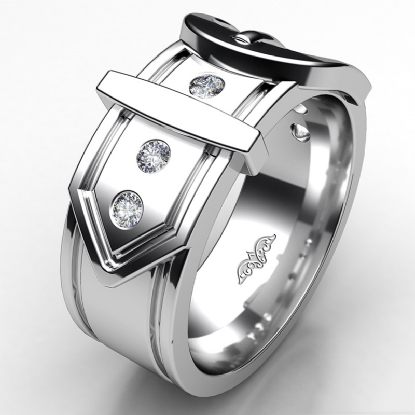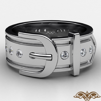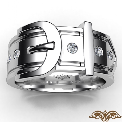 Buckle Design Men's Diamond Wedding Band In 18k W Gold 0.20 Ct. (0.2Ct. tw.)