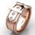 Amazing buckle design men's diamond wedding band handcrafted in polished finish 14k Rose Gold. This unique piece features 0.20 carat round diamonds in a bezel setting on beautiful two tone belt buckle pattern. Available in 14k & 18k white gold, yellow gold, rose gold, two tone gold and platinum 950. (0.2Ct. tw.)