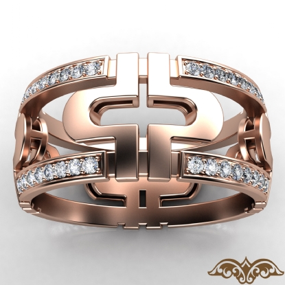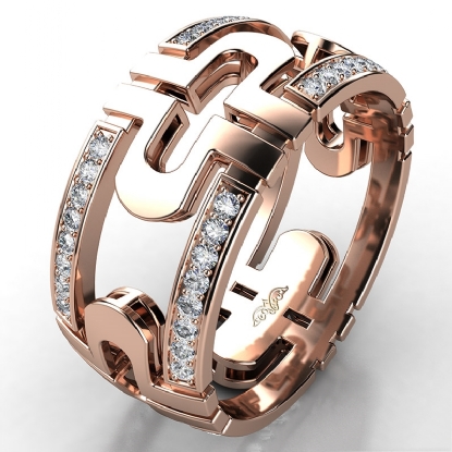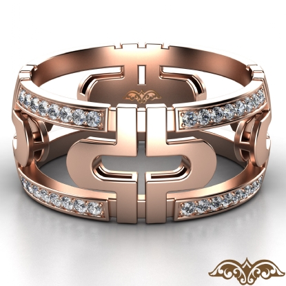 Modern designer men's diamond eternity wedding band crafted in polished finish 14k Rose Gold. Features 0.50 carat round diamonds in a micro pave setting with beautiful striking pattern. Available in 14k & 18k white gold, yellow gold, rose gold, and platinum 950. (0.5Ct. tw.)