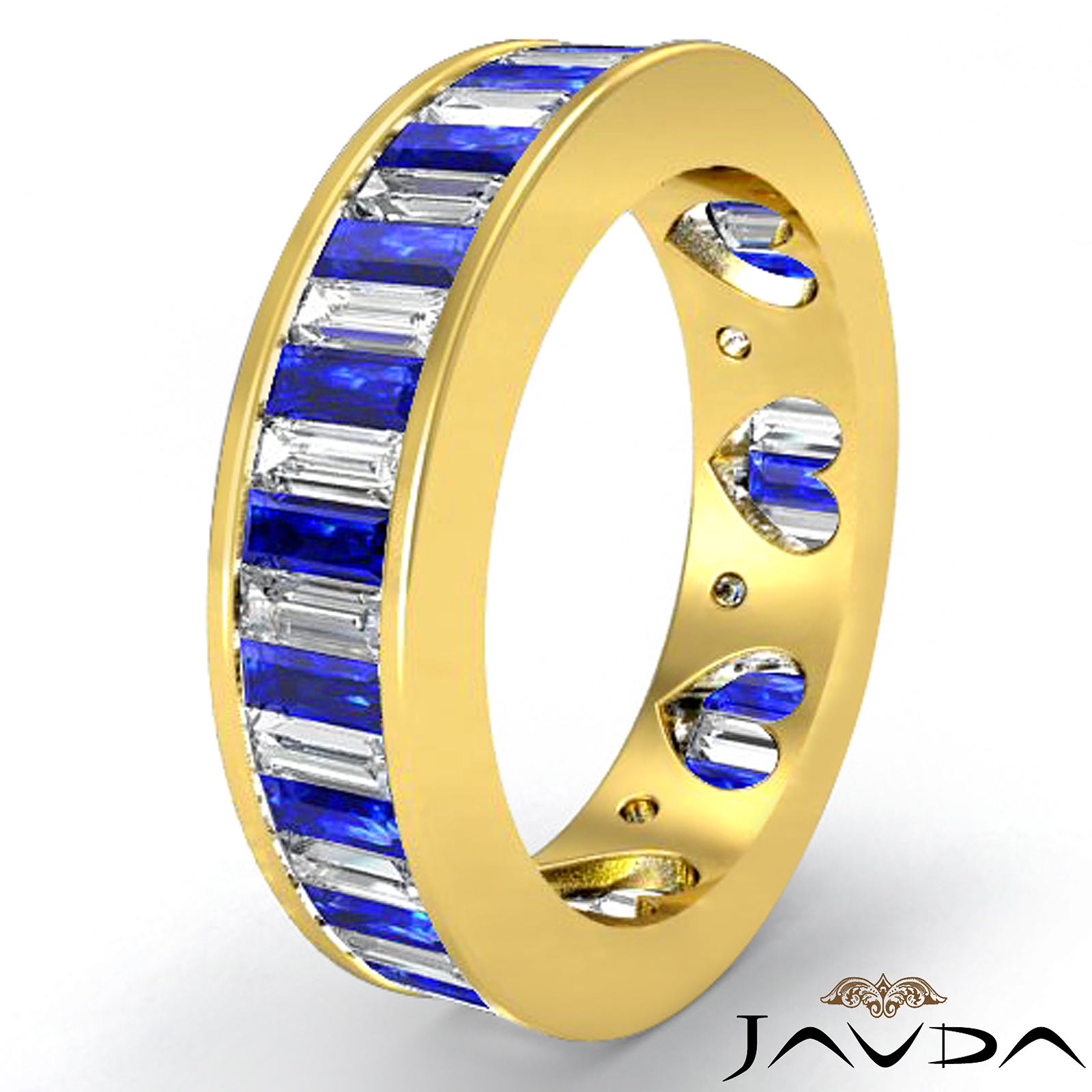 Sapphire Bagutte Diamond Channel Setting Women's Eternity Wedding Band Made in 14k Gold Yellow Ring. Ideal Matching band for Item # R9925 Round Setting. (1.7Ct. tw.)