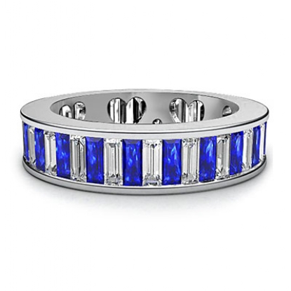 Sapphire Baguette Diamond Women Eternity Wedding Band 18k W Gold Ring (1.7Ct. tw.)