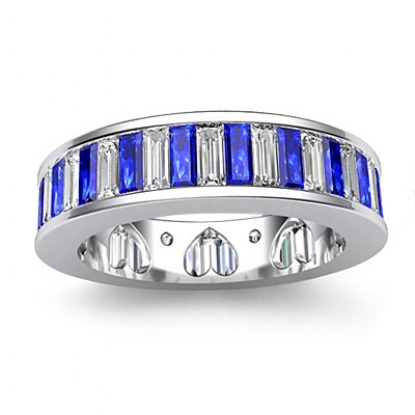 Sapphire Bagutte Diamond Channel Setting Women's Eternity Wedding Band Made in 18k Gold White Ring. Ideal Matching band for Item # R9925 Round Setting. (1.7Ct. tw.)