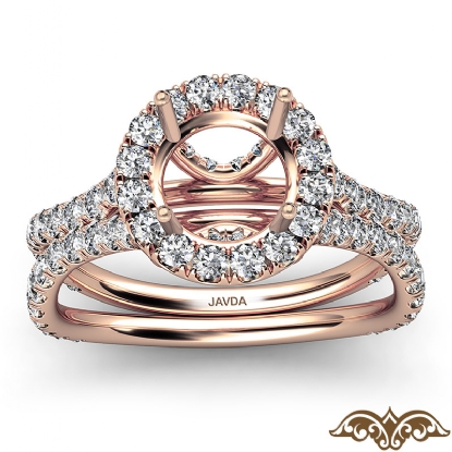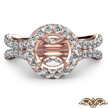 Round Cut Semi Mount Halo Split Shank Diamond Engagement Ring 14k Rose Gold (1.1Ct. tw.)