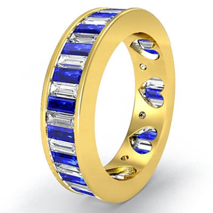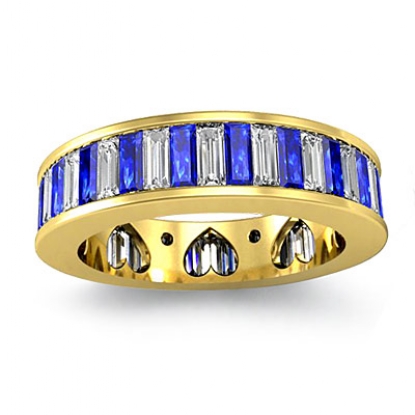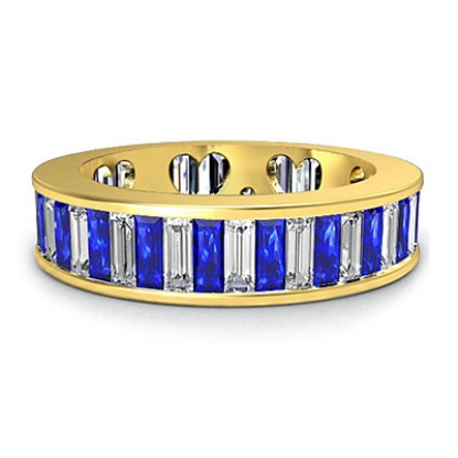 Sapphire Bagutte Diamond Channel Setting Women's Eternity Wedding Band Made in 18k Gold Yellow Ring. Ideal Matching band for Item # R9925 Round Setting. (1.7Ct. tw.)