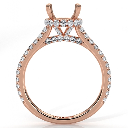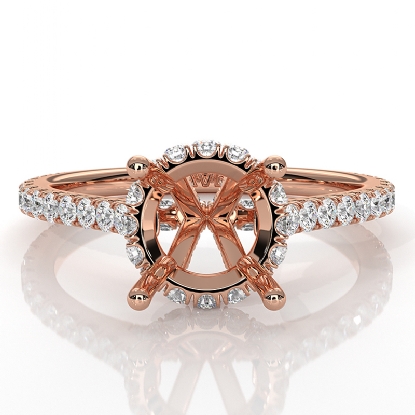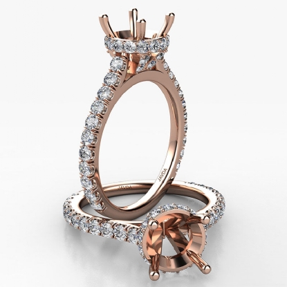 Round Semi Mount French U Pave 14k Rose Gold Accent Diamond Engagement Ring (0.9Ct. tw.)