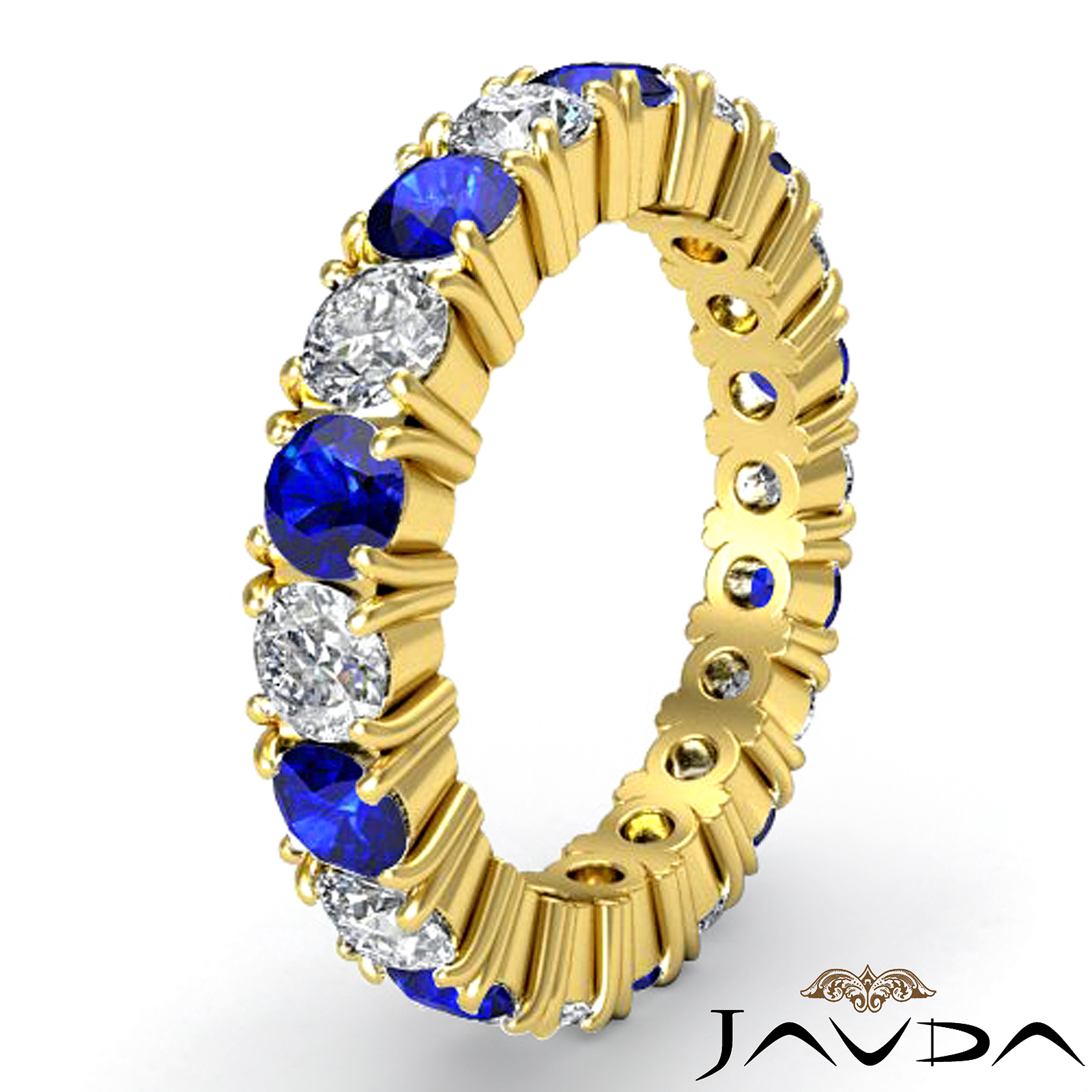 Shared Prong Eternity Ring Sapphire Diamond Women's Band 18k Gold (1.25Ct. tw.)
