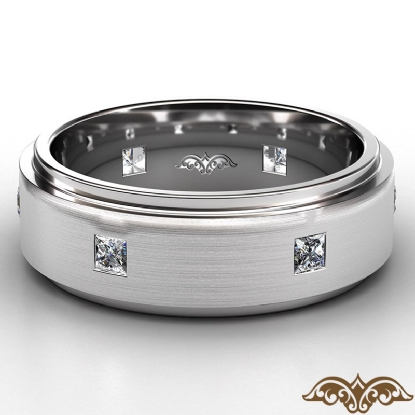 Men's Eternity Bezel Princess Diamond Matte Wedding Band 18k W Gold (0.5Ct. tw.)