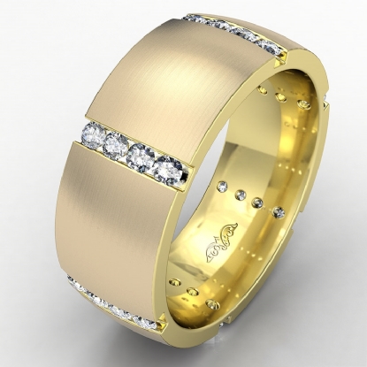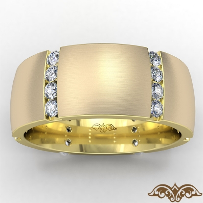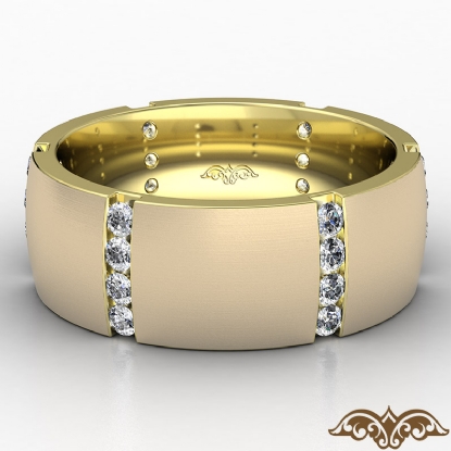 A classic dome men's eternity round diamond wedding band made in 18k Gold Yellow. This matte finish wedding band showcases round diamond in a vertical channel setting. This comfort fit men's wedding band also available in 14k and 18k white gold, yellow gold, rose gold and platinum 950. (0.7Ct. tw.)