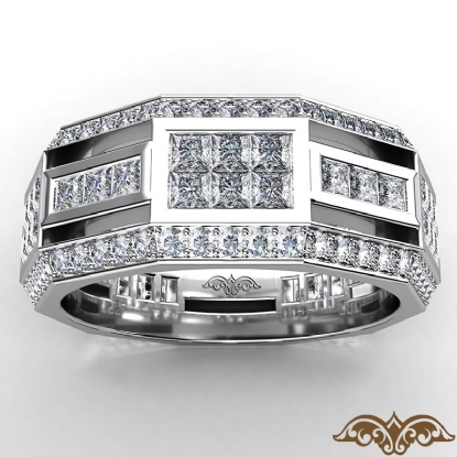 Round & Princess Men's Eternity Diamond Wedding Band Platinum (3.25Ct. tw.)