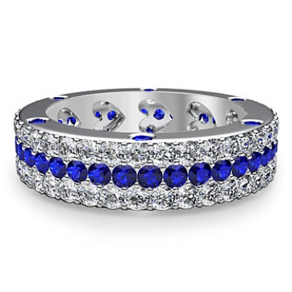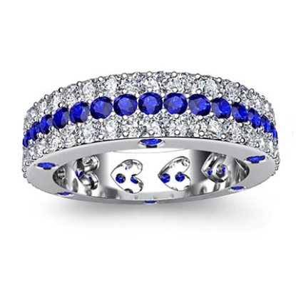 Women's Eternity Wedding Band Platinum 3 Row Round Sapphire Diamond Ring (1.94Ct. tw.)