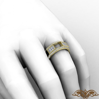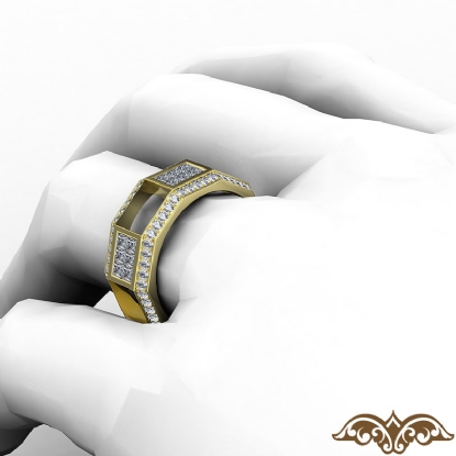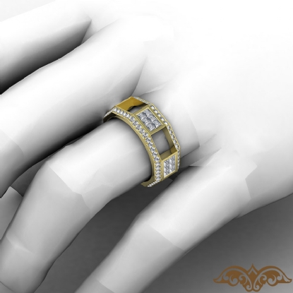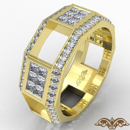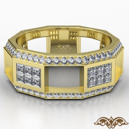 Modern and unique style men's diamond eternity wedding band crafted in 14k Gold Yellow. This wedding ring showcases princess diamonds magnificently set in invisible setting and