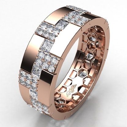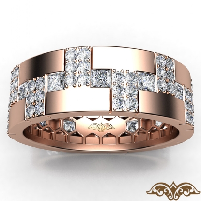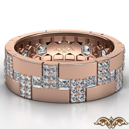 Dazzling diamond eternity men's wedding band expertly crafted in 14k Rose Gold. Features round diamonds in a micro pave set and 0.75 carat princess diamonds in a bezel setting, the alternative diamond settings makes this ring look more precious. This designer wedding ring available in 14k & 18k white gold, yellow gold, rose gold and platinum 950. (2Ct. tw.)