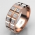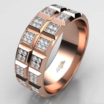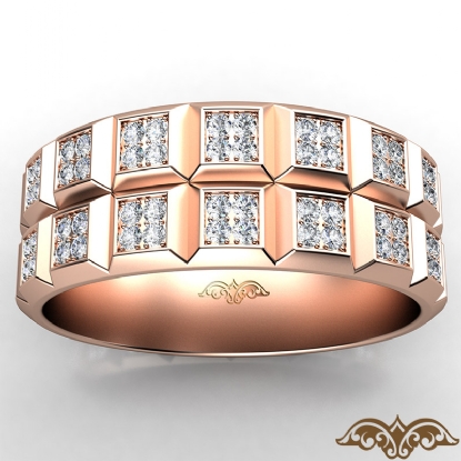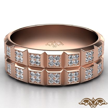 Classic style quad diamond eternity men's wedding band made in 18k Rose Gold. This stylish wedding ring features round diamonds in a micro pave setting beautifully set on quad style with a polished finish horizontal & vertical grooves. Available in 14k & 18k white gold, yellow gold, rose gold and platinum 950. (1.3Ct. tw.)