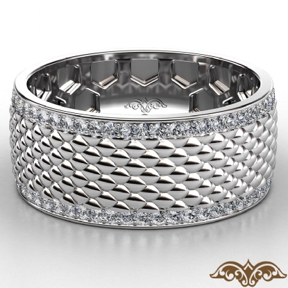 Fish Scale Pattern Diamond Eternity Men's Wedding Band 18k W Gold (1Ct. tw.)