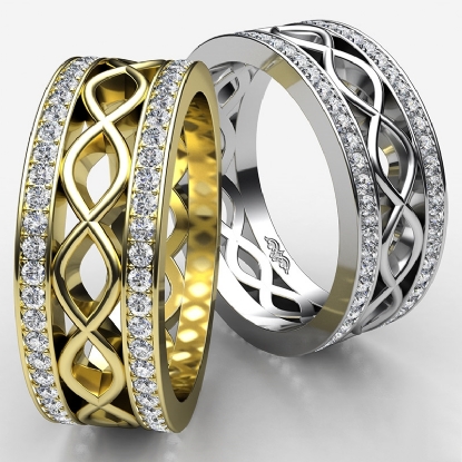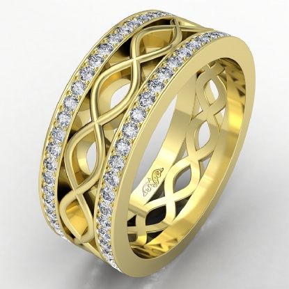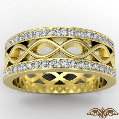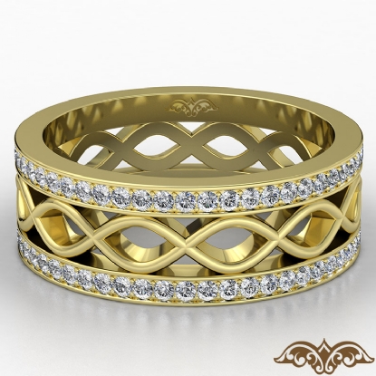 A symbol of everlasting love, infinity center diamond eternity men's wedding band handmade in 18k Gold Yellow. Features round diamonds in a micro pave setting on edges with beautiful infinity twist design in a polished finished metal. This wedding band is also available in 14k & 18k white gold, yellow gold, rose gold and platinum 950. If you don't find your desired jewelry, please don?t hesitate to contact our designer to make your custom jewelry design (1Ct. tw.)